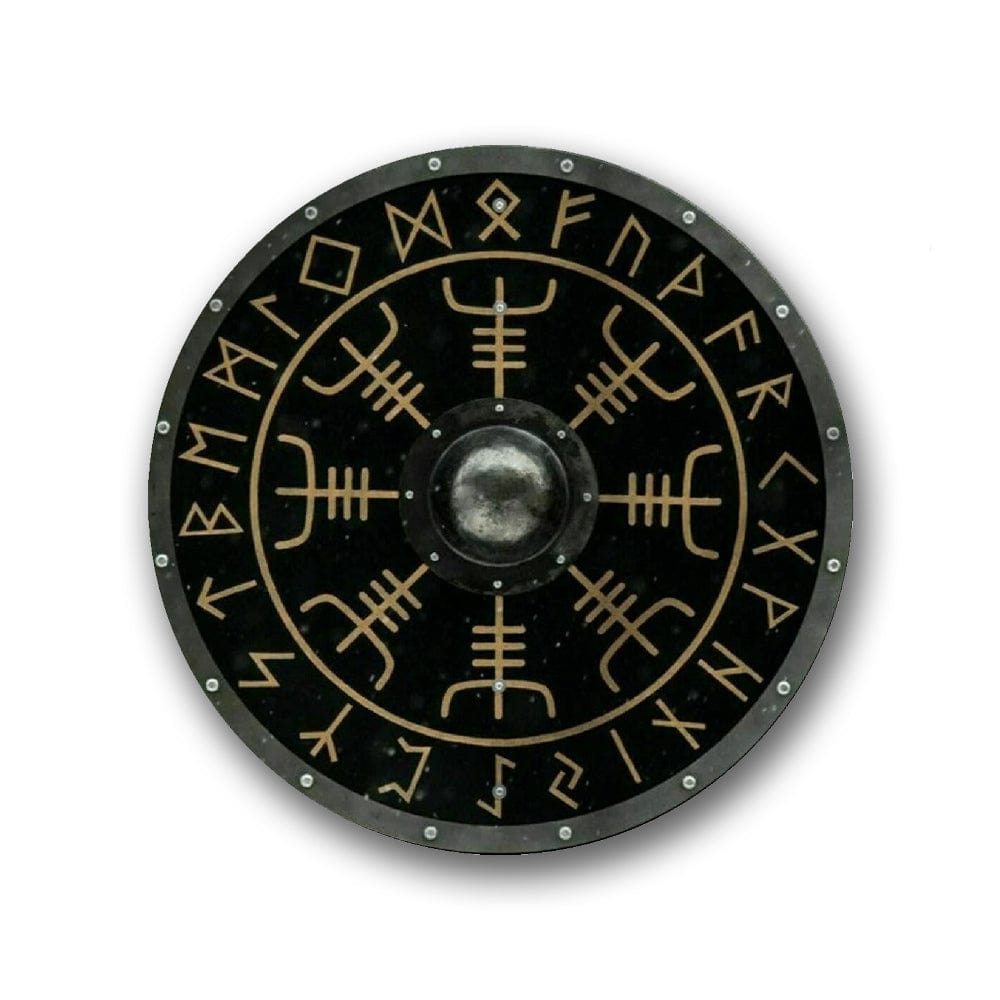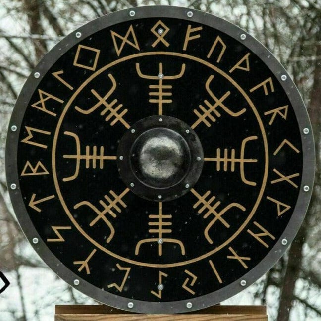 Le Bouclier Viking – Blizzardbane est une pièce décorative inspirée des traditions nordiques et de l’histoire des guerriers scandinaves. Ce bouclier circulaire associe une base en bois et des éléments décoratifs en métal, idéal pour la décoration, la collection ou le cosplay.