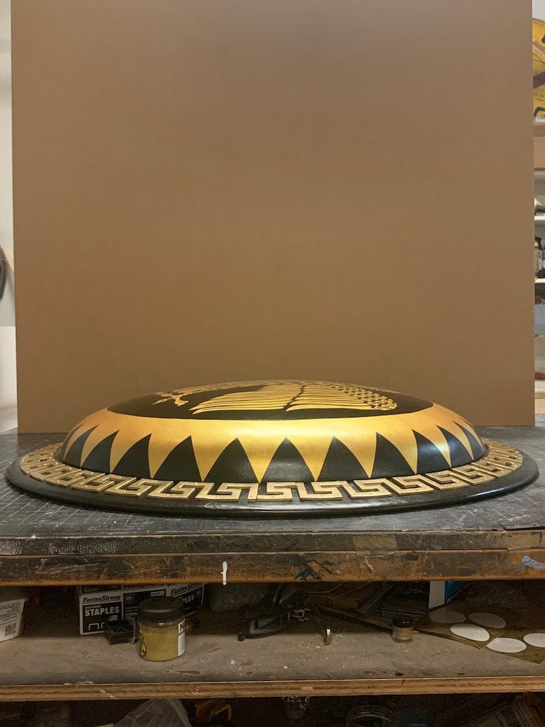 Le Bouclier Viking – Bouclier de la Chouette est une pièce décorative inspirée des traditions nordiques. Ce bouclier circulaire associe une base en bois et des détails décoratifs en métal, ce qui en fait un objet idéal pour la décoration, la collection ou le cosplay.