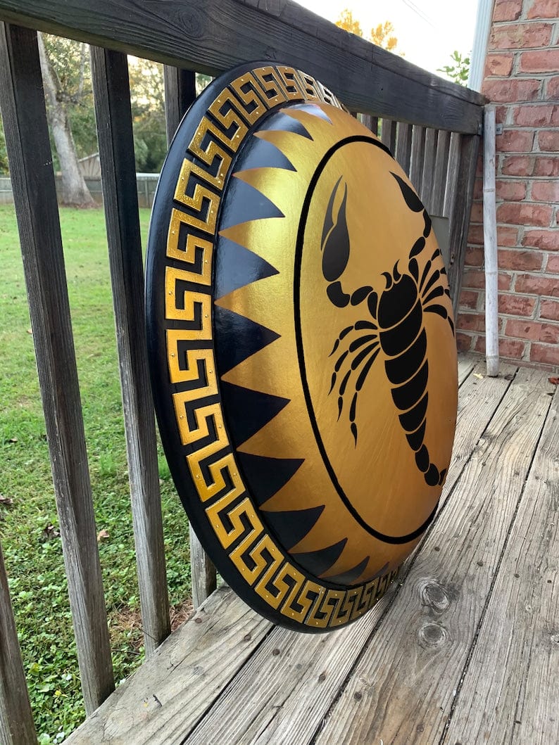 Le Bouclier Viking – Bouclier du Scorpion est une pièce décorative inspirée de l’univers nordique et des guerriers scandinaves. Ce bouclier circulaire associe une base en bois avec des éléments décoratifs en métal, parfait pour la décoration intérieure, la collection ou le cosplay.