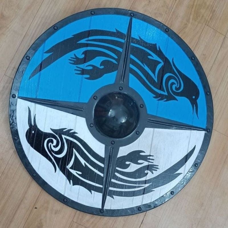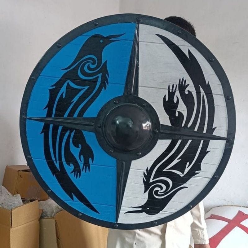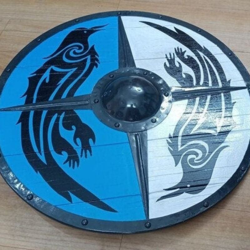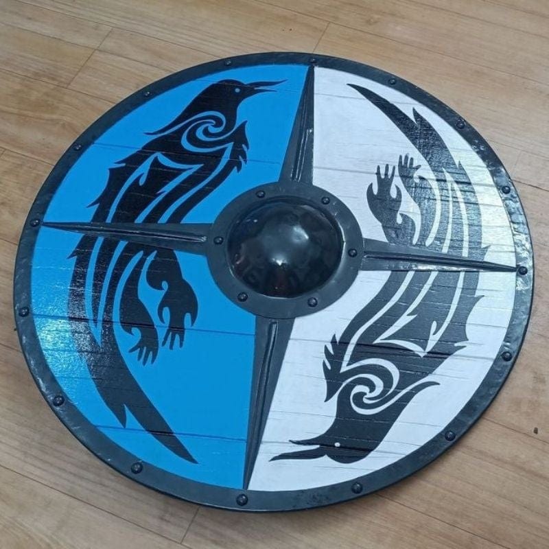 Le Bouclier Viking Eivor est conçu pour la décoration, la collection ou la reconstitution historique. Inspiré des boucliers traditionnels nordiques, il est fabriqué en bois avec des renforts en métal pour un aspect authentique. Ce modèle est adapté pour être exposé ou utilisé comme accessoire lors d’événements historiques ou de cosplay.