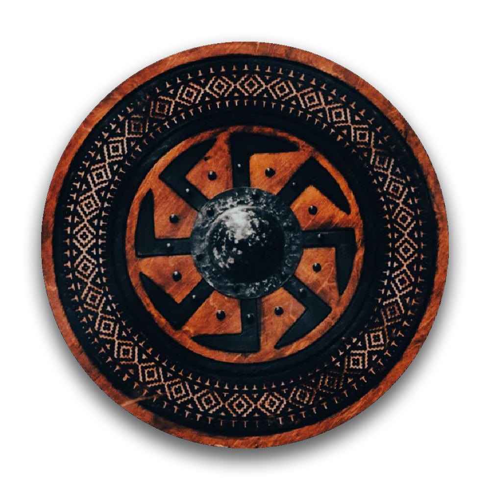 Le Bouclier Viking – Frosthilde est un accessoire décoratif inspiré par la culture et l’histoire nordique. Fabriqué en bois avec des renforts en métal, il possède une forme circulaire traditionnelle, rappelant les boucliers utilisés à l’époque des Vikings. Ce produit convient pour la décoration intérieure, les costumes ou les reconstitutions historiques.