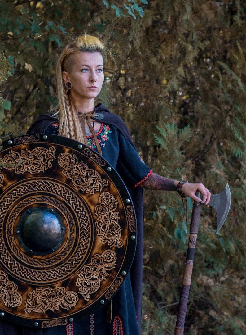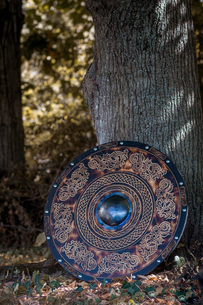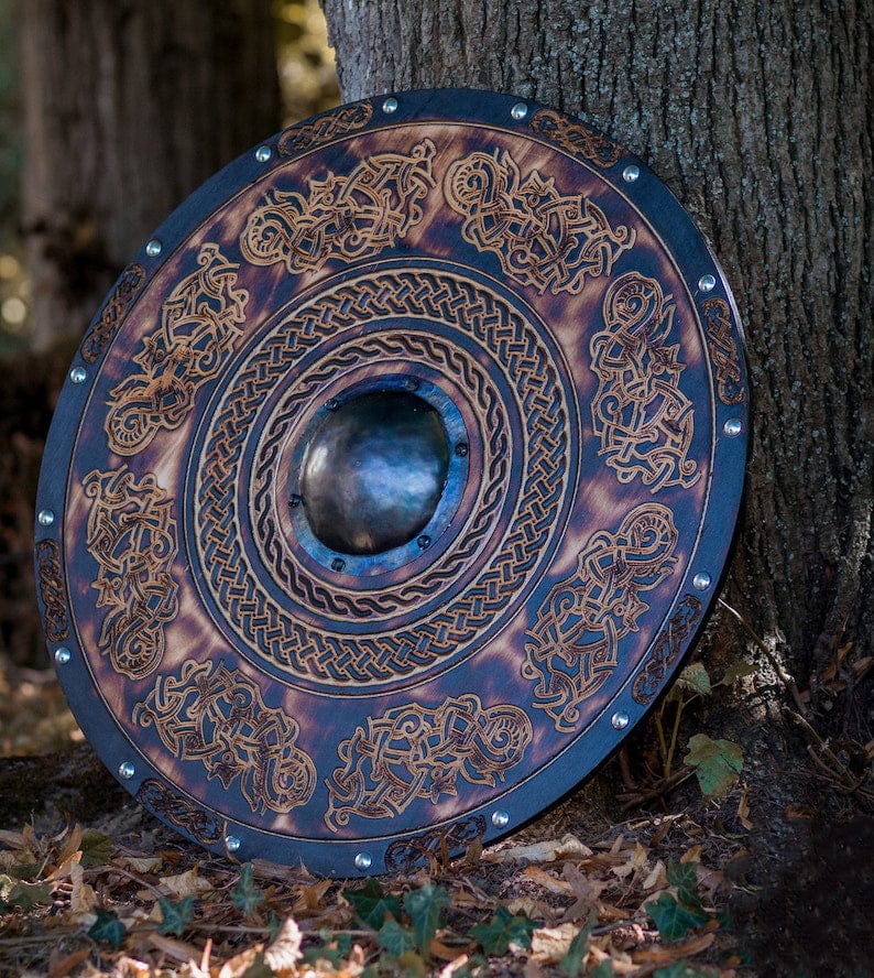 Le Bouclier Viking – Garde des Étoiles est un objet décoratif inspiré de la culture nordique et des traditions vikings. Fabriqué en bois avec des renforts métalliques, il est conçu pour la décoration intérieure, la collection ou les événements costumés.