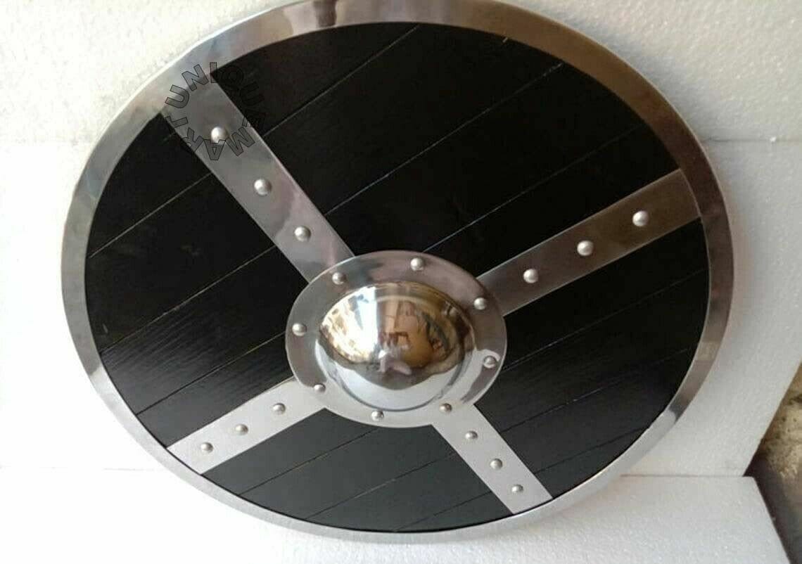 Le Bouclier Viking – Rempart Viking est un accessoire décoratif inspiré par la culture et l’histoire nordique. Conçu en bois avec des éléments en métal, il présente une forme circulaire traditionnelle qui reflète l’artisanat des boucliers vikings. Ce produit est adapté pour la décoration intérieure, les costumes ou les reconstitutions historiques.