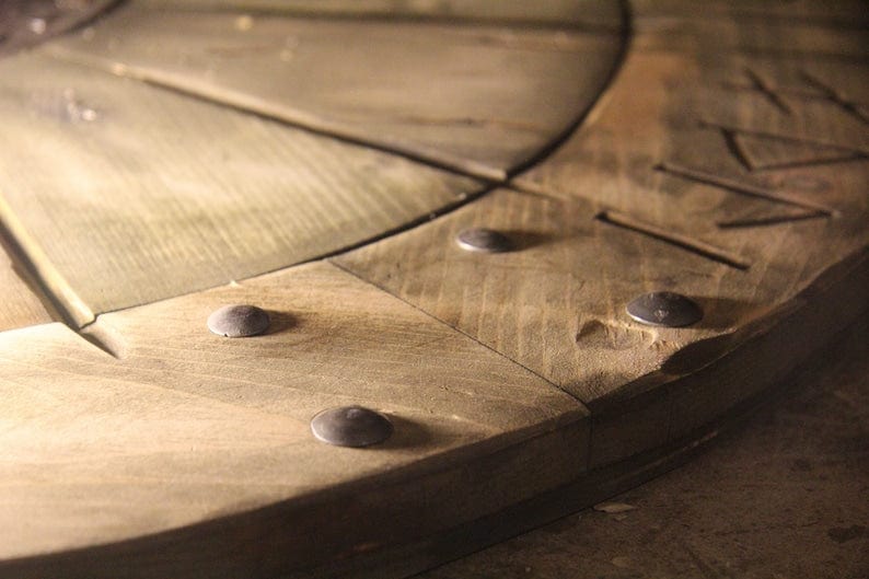 Le Bouclier Viking – Yggdrasilgardien est un accessoire décoratif inspiré par l’histoire et la culture nordique. Fabriqué en bois avec des éléments en métal, il présente une forme circulaire traditionnelle, rappelant les boucliers utilisés à l’époque des Vikings. Ce produit est conçu pour la décoration intérieure, les costumes ou les reconstitutions historiques.